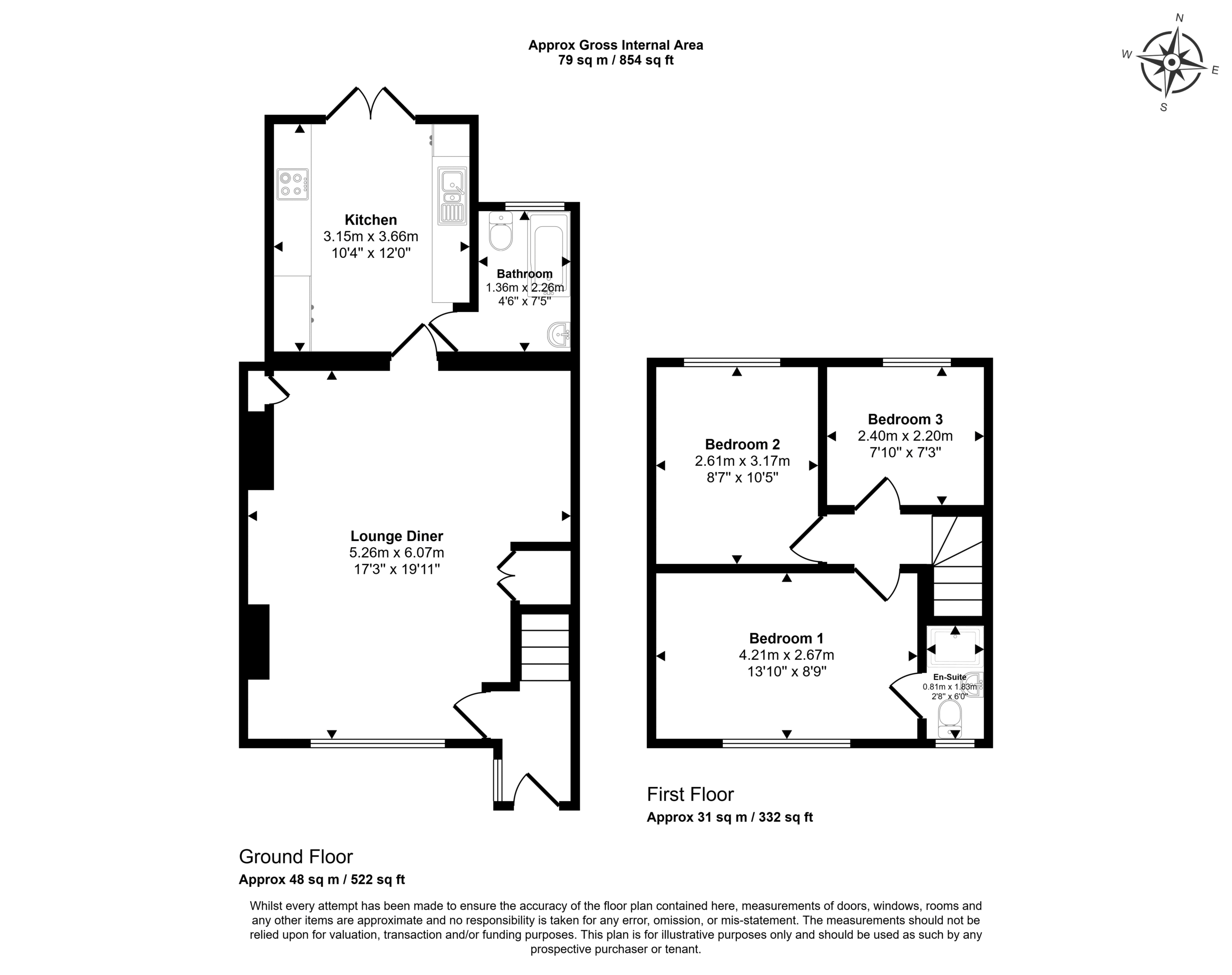 Upstairs, the property offers a generous en suite main bedroom, a second double bedroom, and a third single room – perfect for a nursery, guest room or home office. The front of the property benefits from ample off-street parking.
