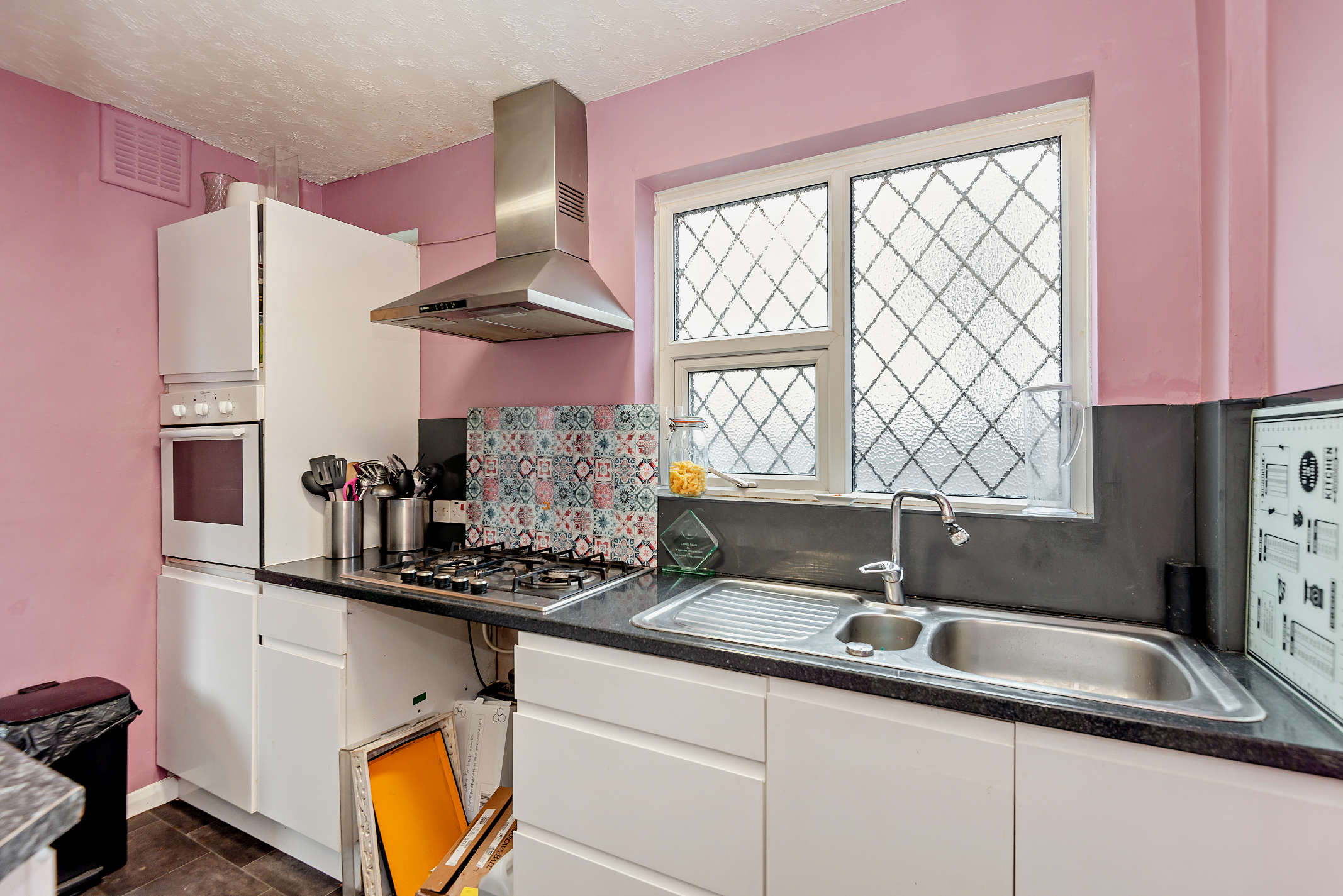 The kitchen offers base cabinets with integrated appliances and space for under worktop appliances. There is access from the kitchen to the adjoining utility.