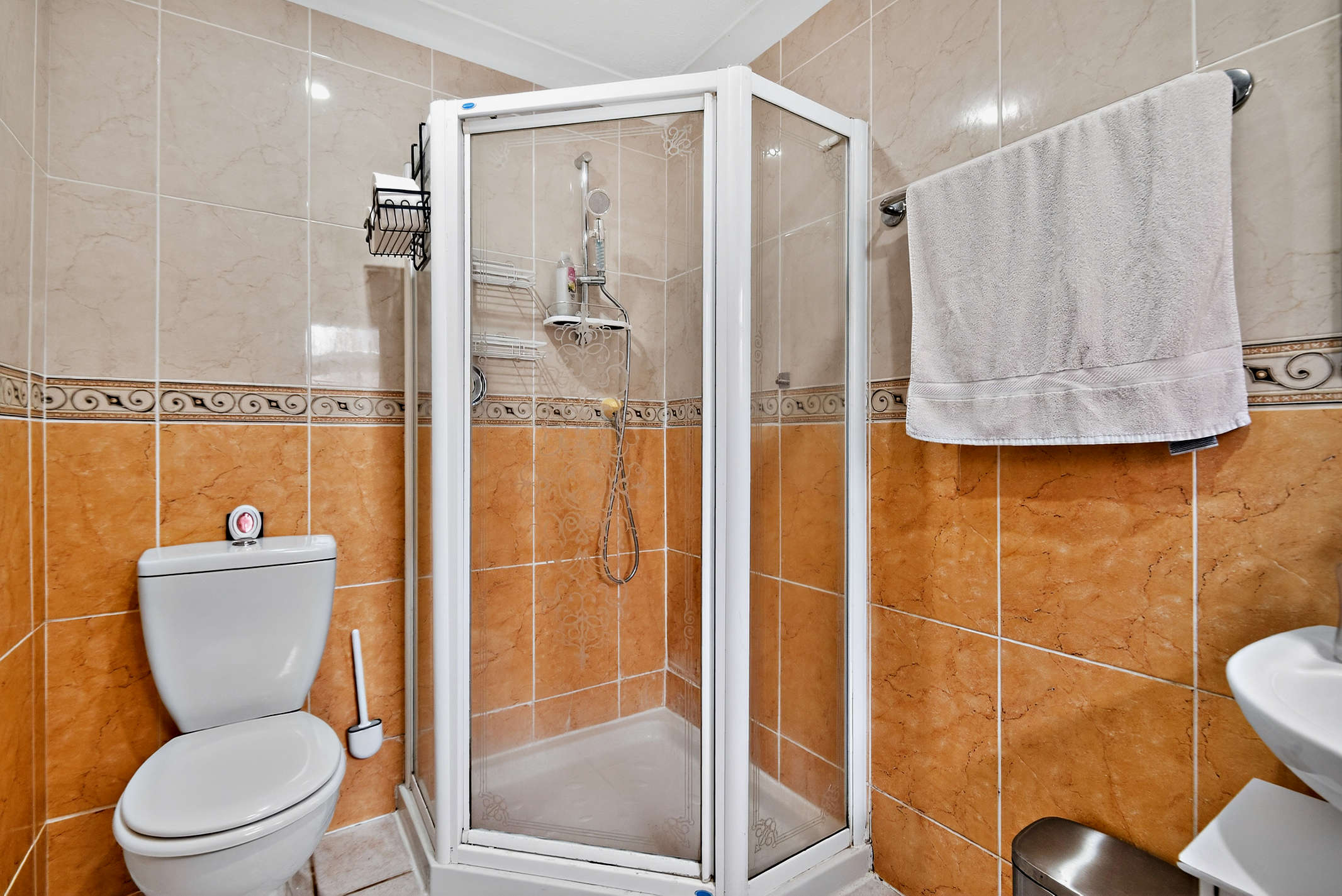 The shower room is equipped with toilet, wash-hand basin, and shower facilities.
