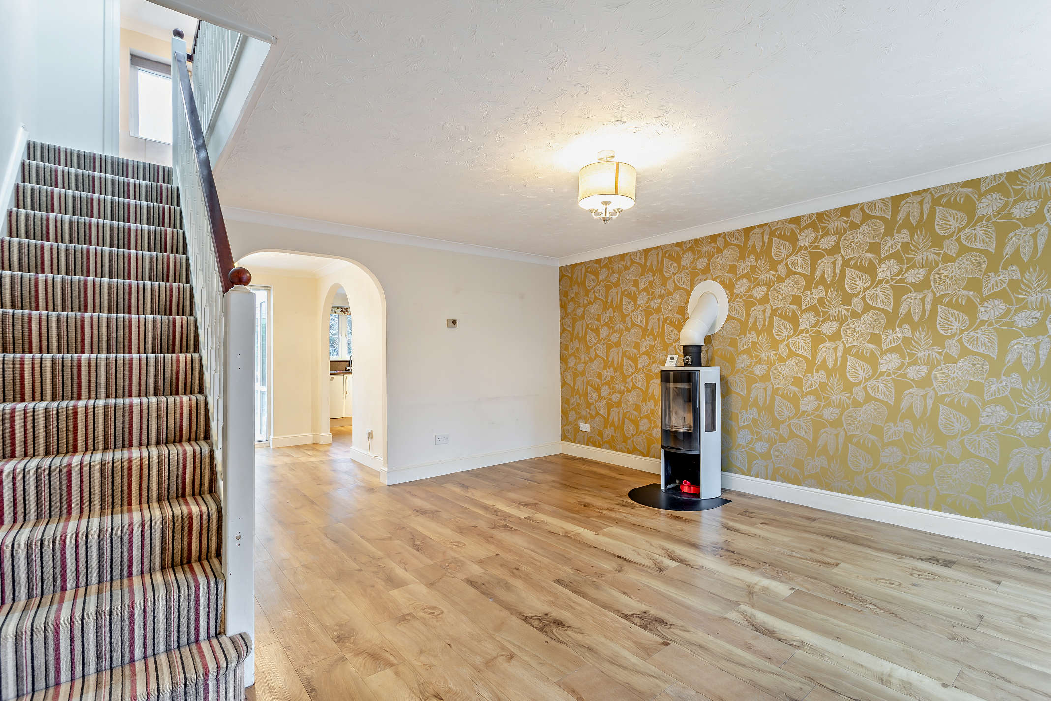 The ground floor welcomes you via a porch with convenient WC, leading into a bright and comfortable lounge featuring a wood burner, creating a warm and inviting focal point. The lounge flows seamlessly through to the dining room, ideal for everyday living and entertaining, with an arched opening into the modern kitchen, which offers ample storage and a clean, contemporary finish. Completing the ground floor is a conservatory overlooking the rear garden and access to the integral garage.