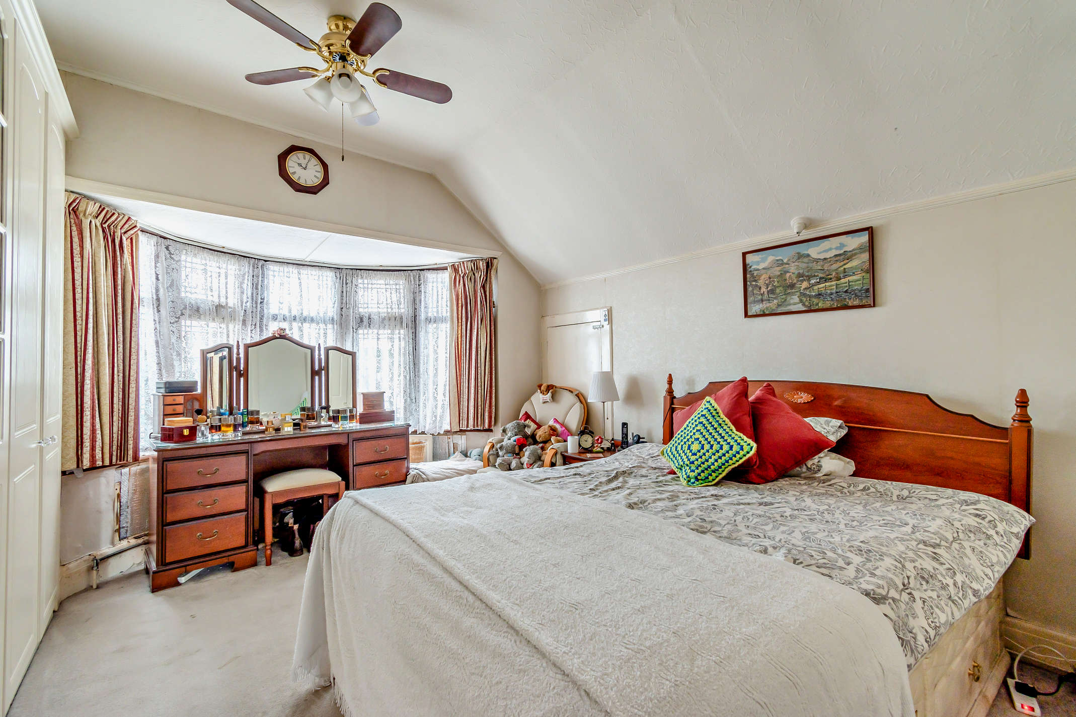 This double bedroom features a front aspect bay window, carpeted flooring and built in storage space.