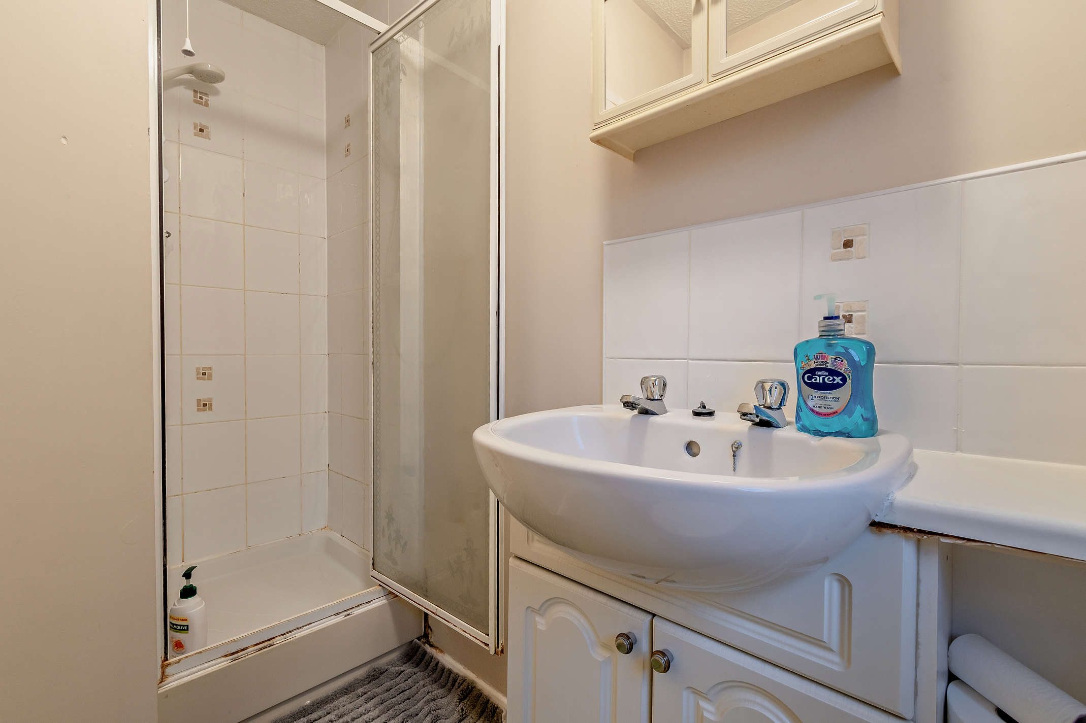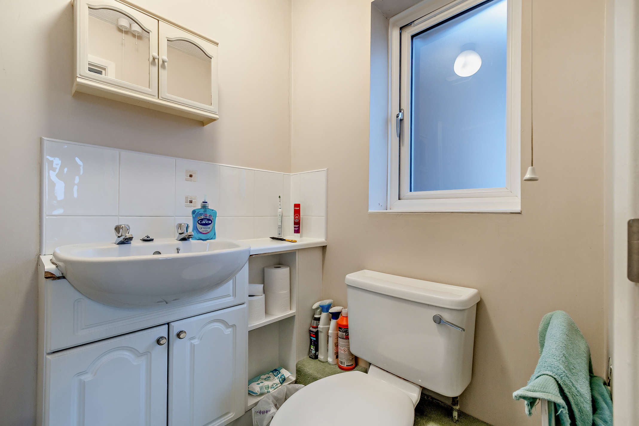 The en suite shower room is fitted with shower, wash hand basin, and toilet facilities.