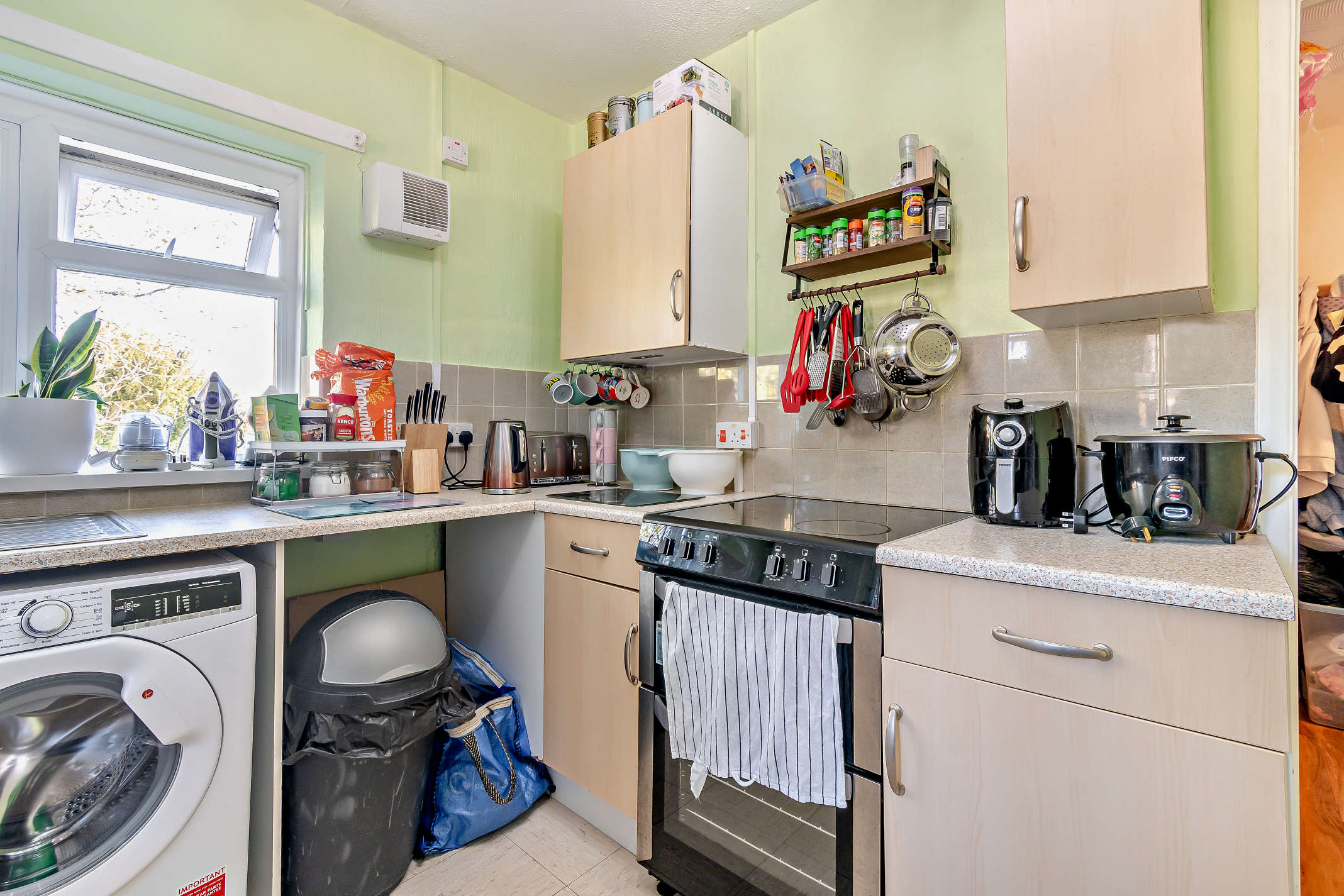 The kitchen is fitted with storage cupboards and a full stove. More features includes tiled flooring and windows offering views to the side and back of the property.