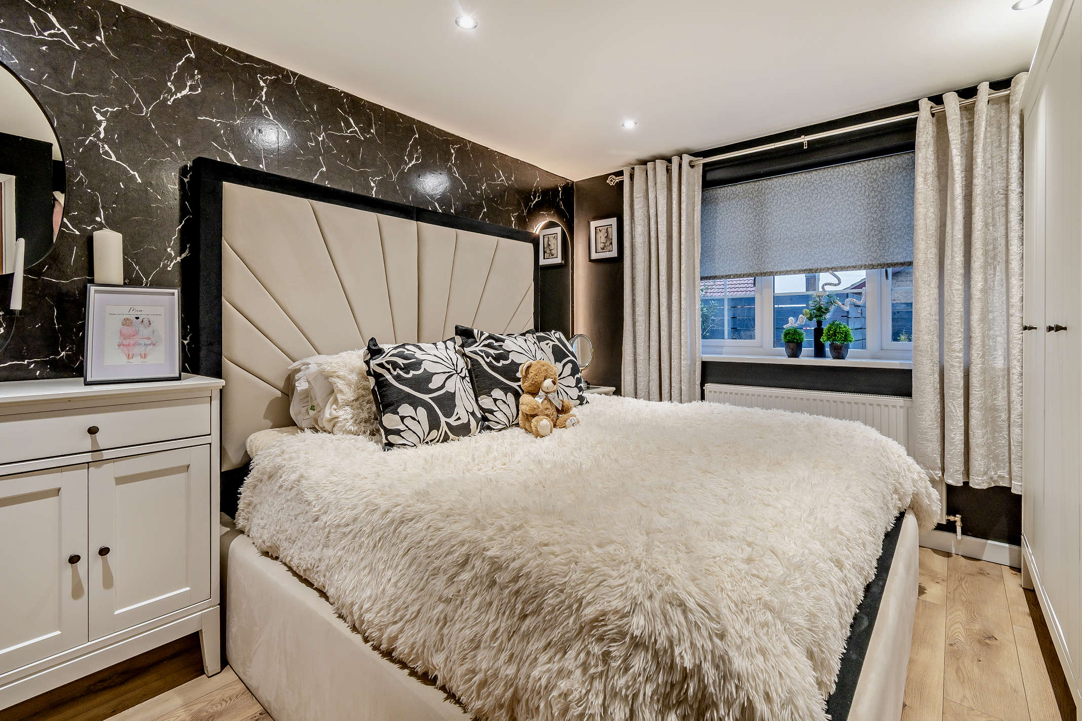 This double bedroom is a good size with neutral décor, carpeted flooring and a front aspect view.