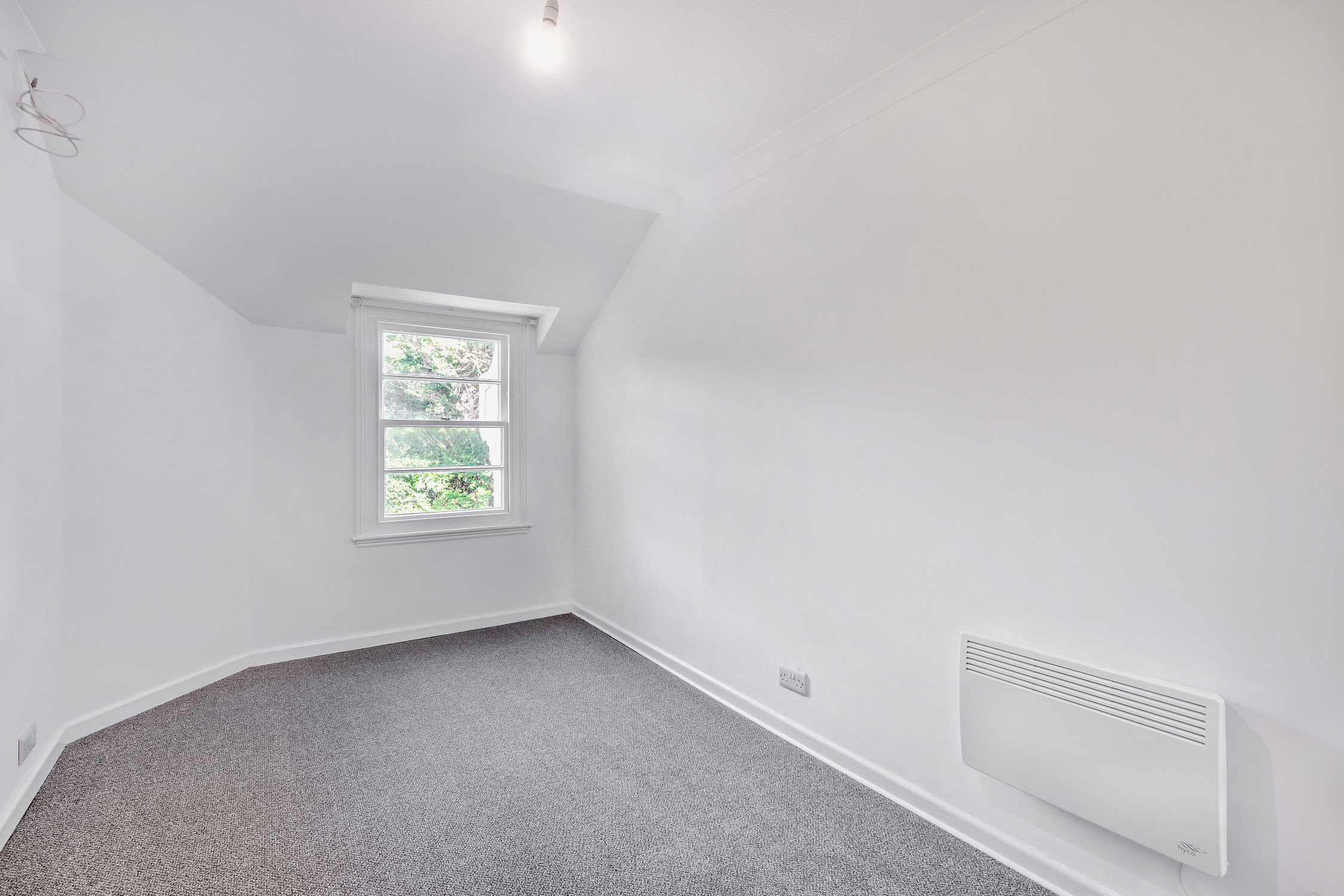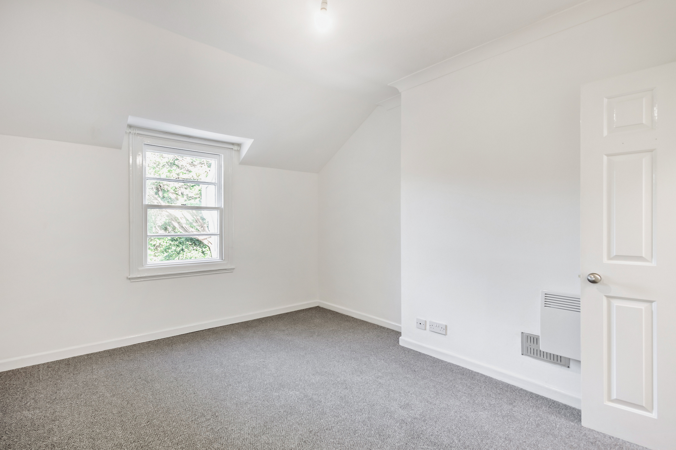 This spacious, neutrally decorated double bedroom is light-filled and offers carpeted flooring.