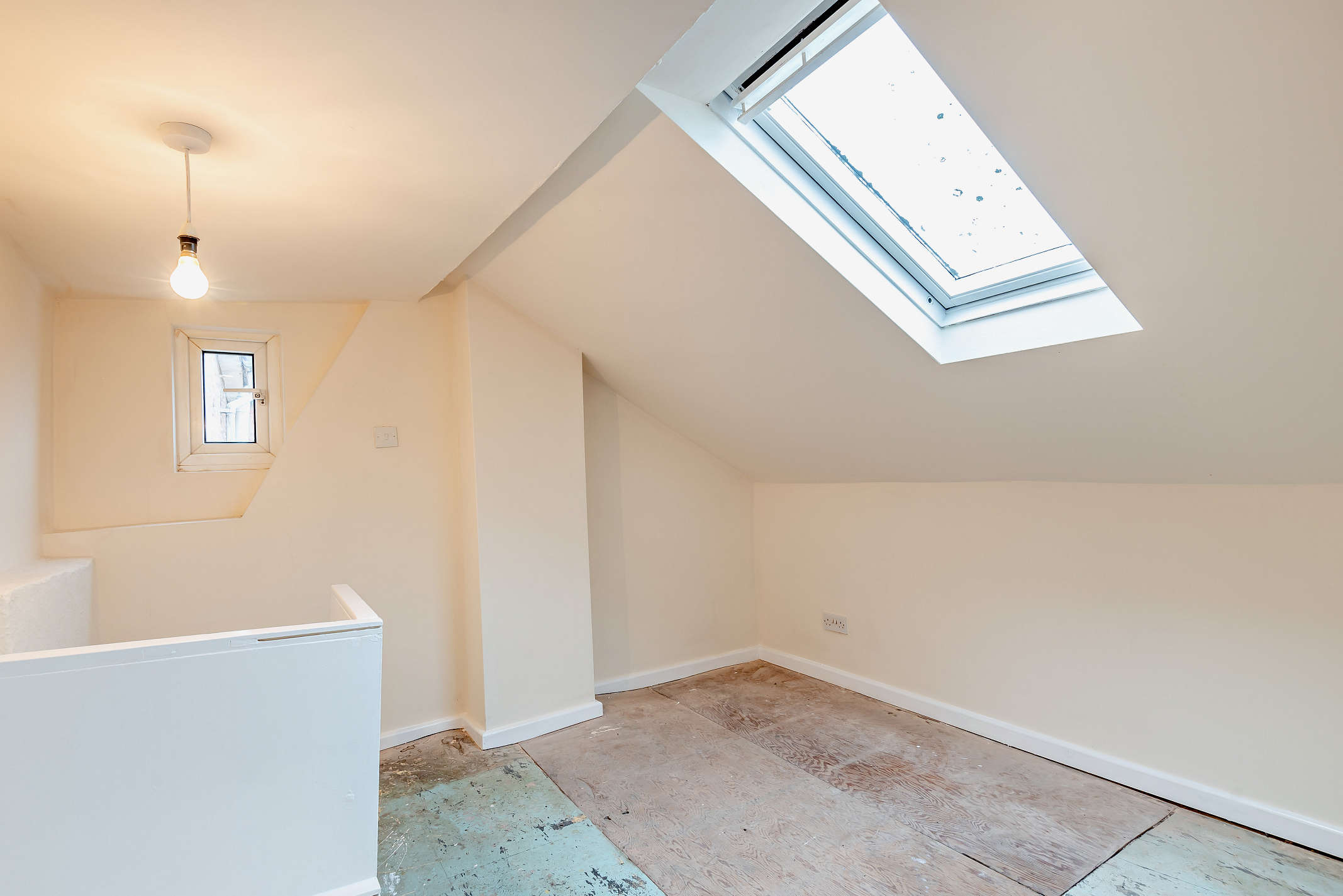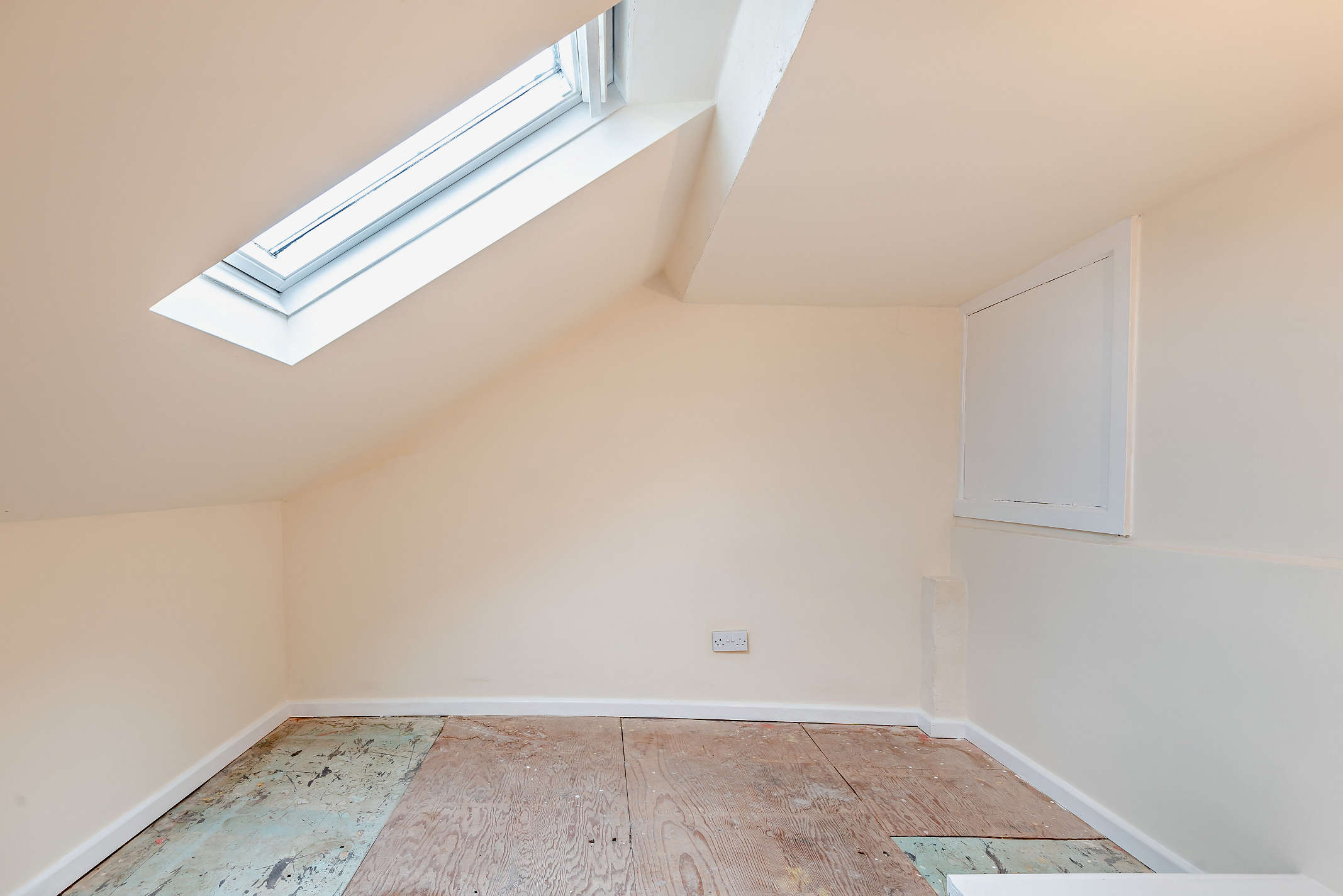 This room is on the second floor and it is spacious, neutrally decorated and offers flexibility of use. It also offers lots of natural light through a skylight window.