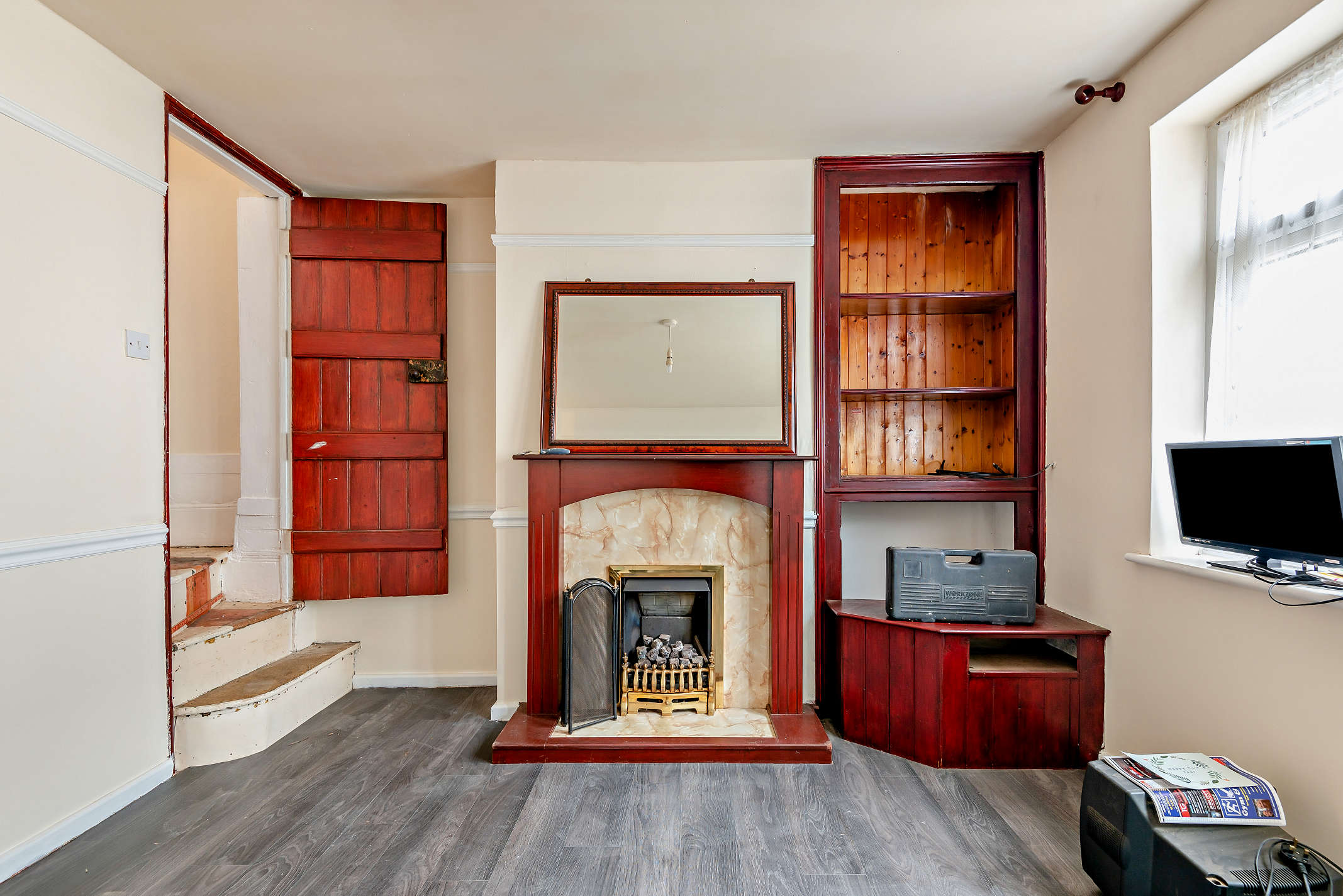 This is a spacious, front aspect room with a feature fireplace and laminate flooring.