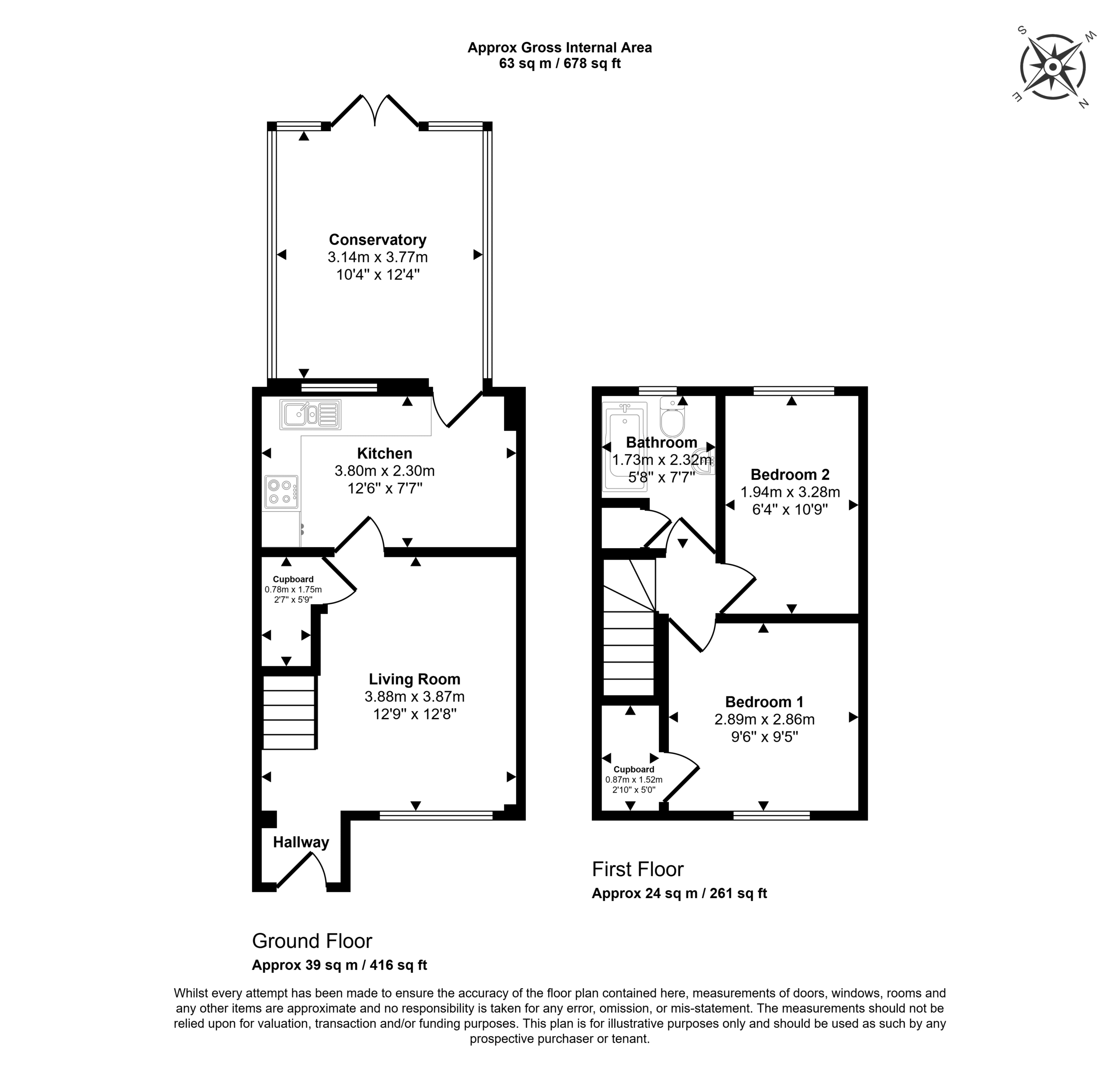 The kitchen is both stylish and practical, complete with integrated appliances including an oven, gas hob, and extractor fan . Beyond the kitchen, a delightful conservatory extends the living space, offering flexibility as a dining area or a second reception room.