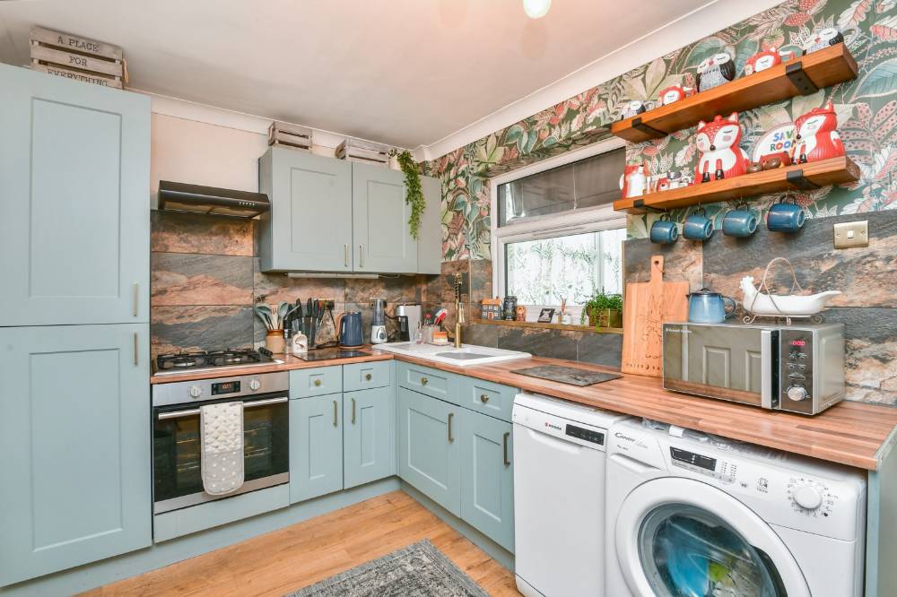 Step inside this beautifully maintained 2-bedroom mid-terrace home and discover a space designed for modern living. From the moment you enter the hallway and porch, there’s a warm sense of home — a perfect spot to leave coats and shoes before stepping into the inviting living room, tastefully decorated and featuring a convenient understairs storage cupboard.