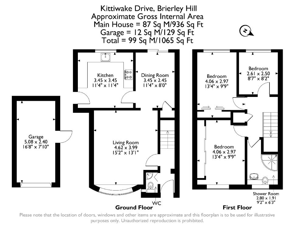 The ground floor features a bright living room, a dedicated dining room, a well-planned kitchen, and a convenient WC. Upstairs you’ll find three generously sized bedrooms and a modern shower room, offering a comfortable layout for daily living. The home also benefits from a garage, adding secure parking or valuable storage.