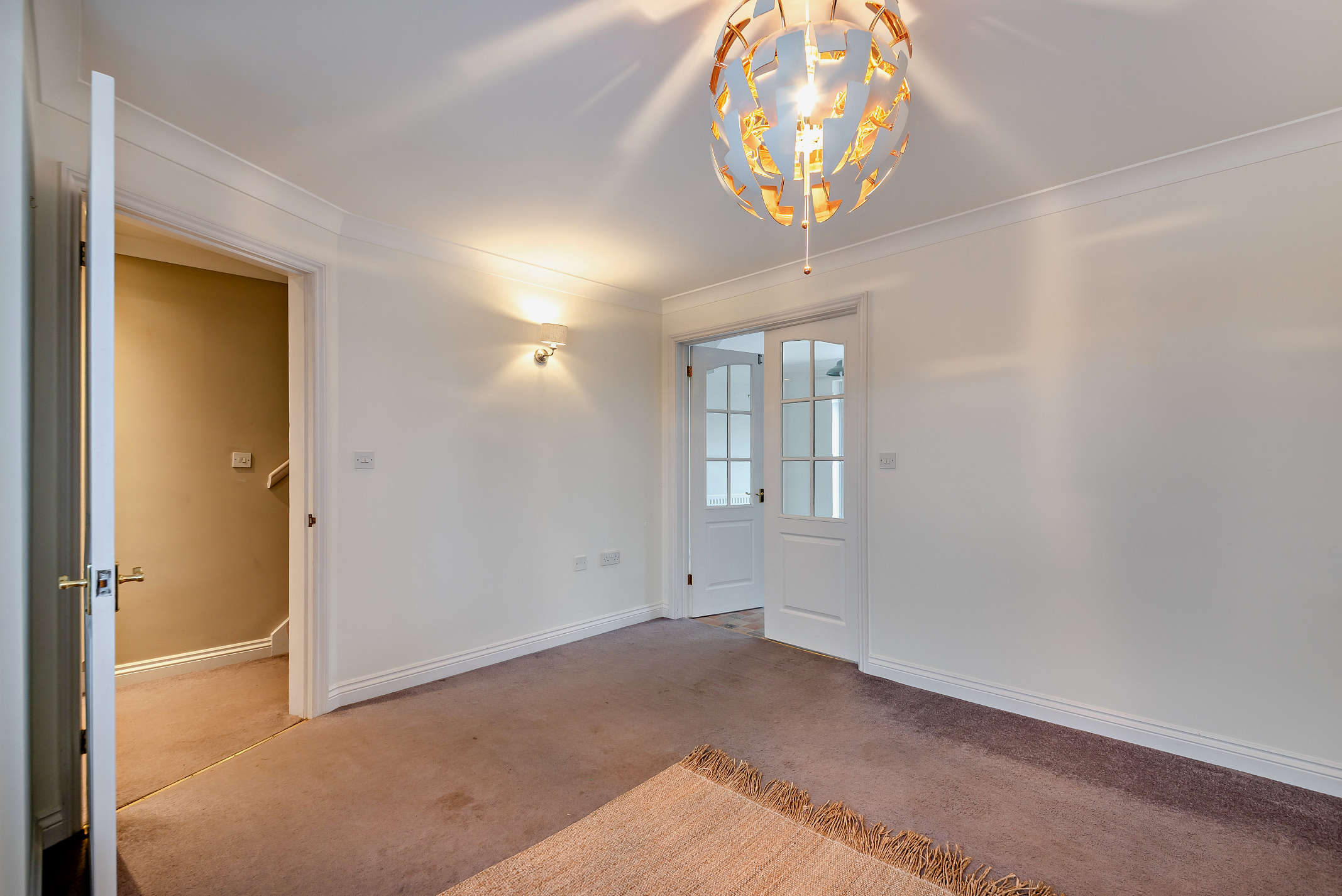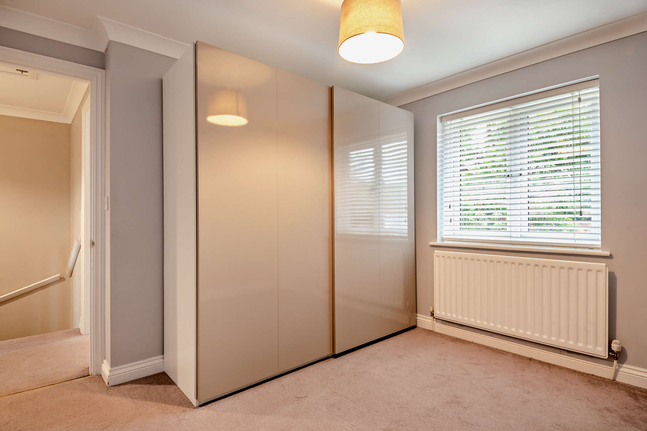 Landing area with an inbuilt linen cupboard and loft access via a pull down staircase. The loft is fully insulated and boarded and is fitted out with electrics. Doors from the landing lead to: