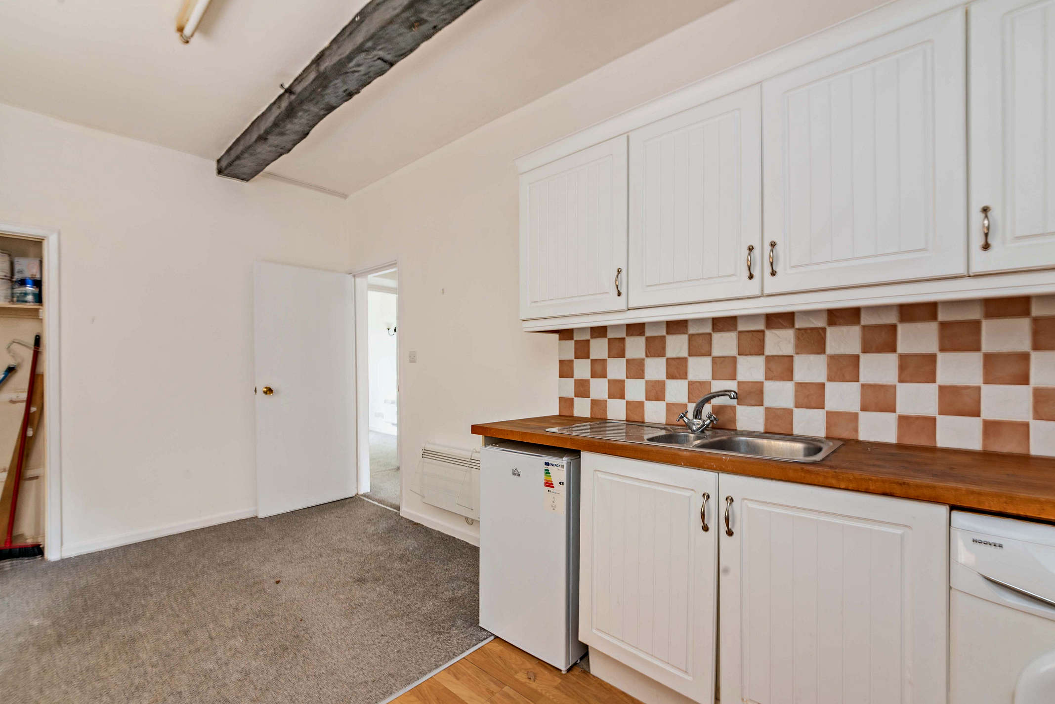 The property benefits from a entrance and comprises a welcoming kitchen/dining space, perfect for everyday living and entertaining. The spacious lounge features a charming fireplace and carpeted flooring. There is a generous double bedroom and a family bathroom fitted with a bath and overhead shower, wash basin, and WC.