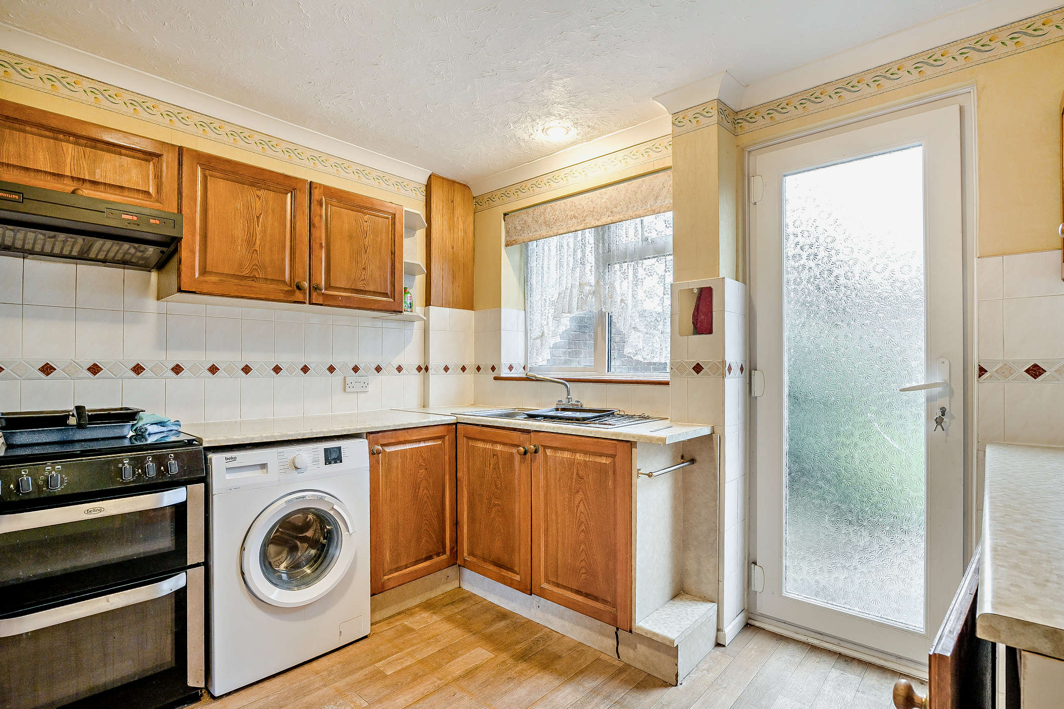 On the first floor, the property comprises three well-proportioned bedrooms, along with a family bathroom and a separate toilet.
