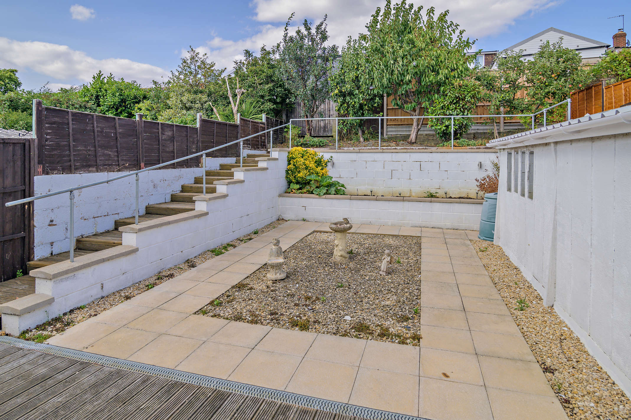 The property is approached over an enclosed front garden with an ornamental shingle bed which adjoins a long driveway, leading through double gates to the garage. To the side of the property is the main entrance. The enclosed rear garden is spacious with a ground level seating area with decking and ornamental shingle. Up steps, there is a second seating area above the garden which is bordered by planting and fruit trees. The garage opens to the driveway and garden from the front. The property also has solar panels to the front side of the roof.