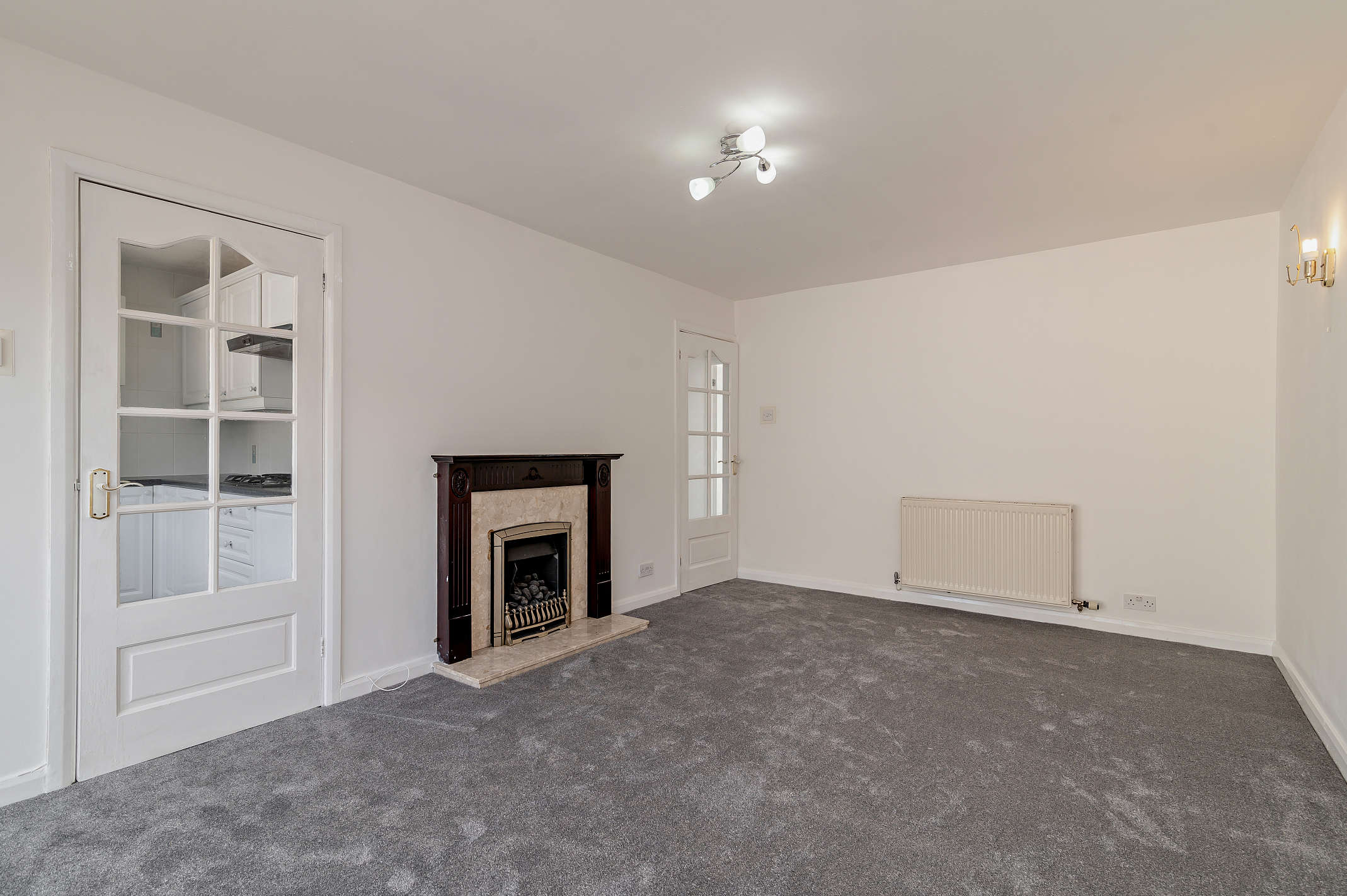 This is a large, social space with ample room for both lounge and dining furniture. It is neutrally decorated, has a feature fireplace and carpeted flooring. French doors open to the garden from this room.