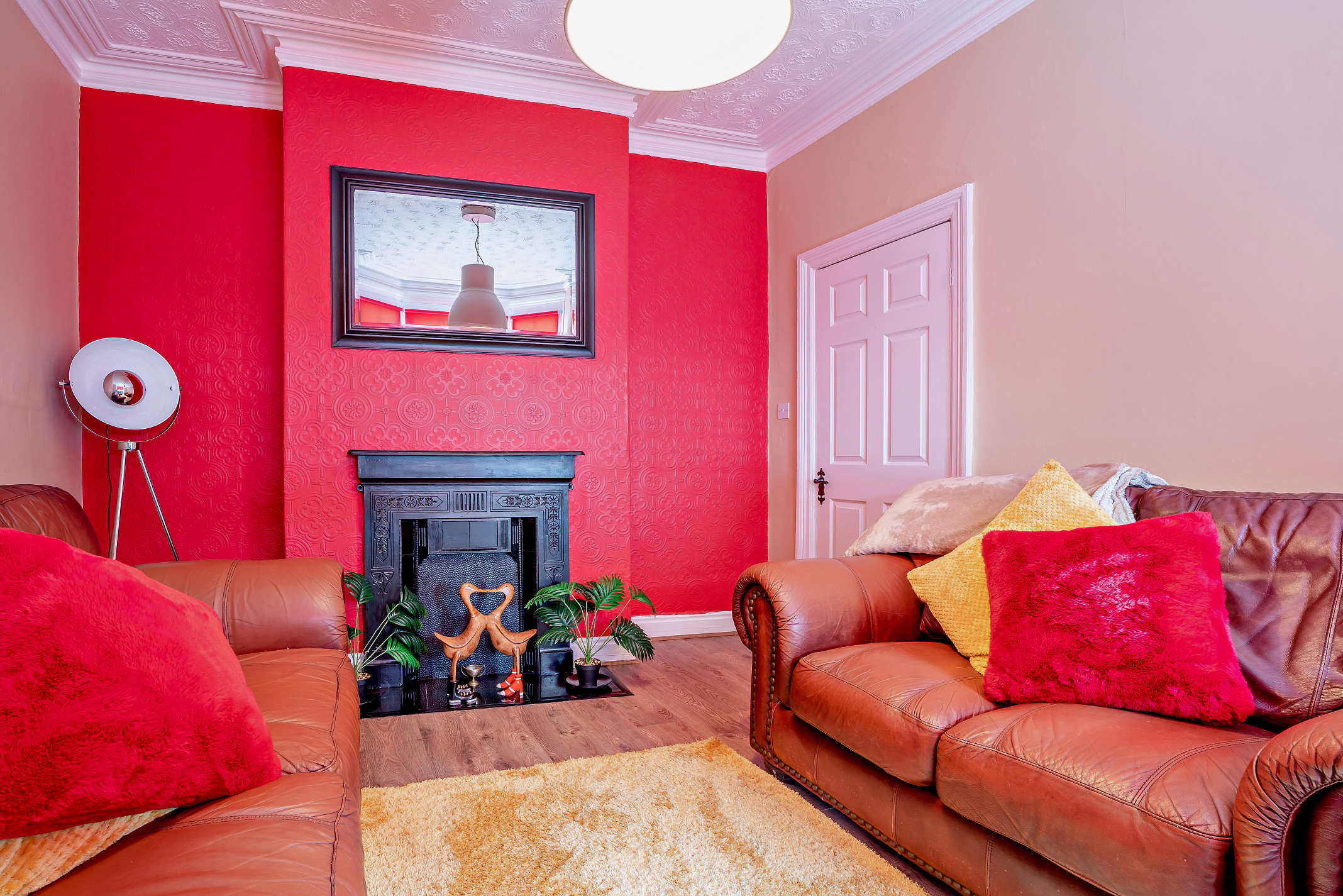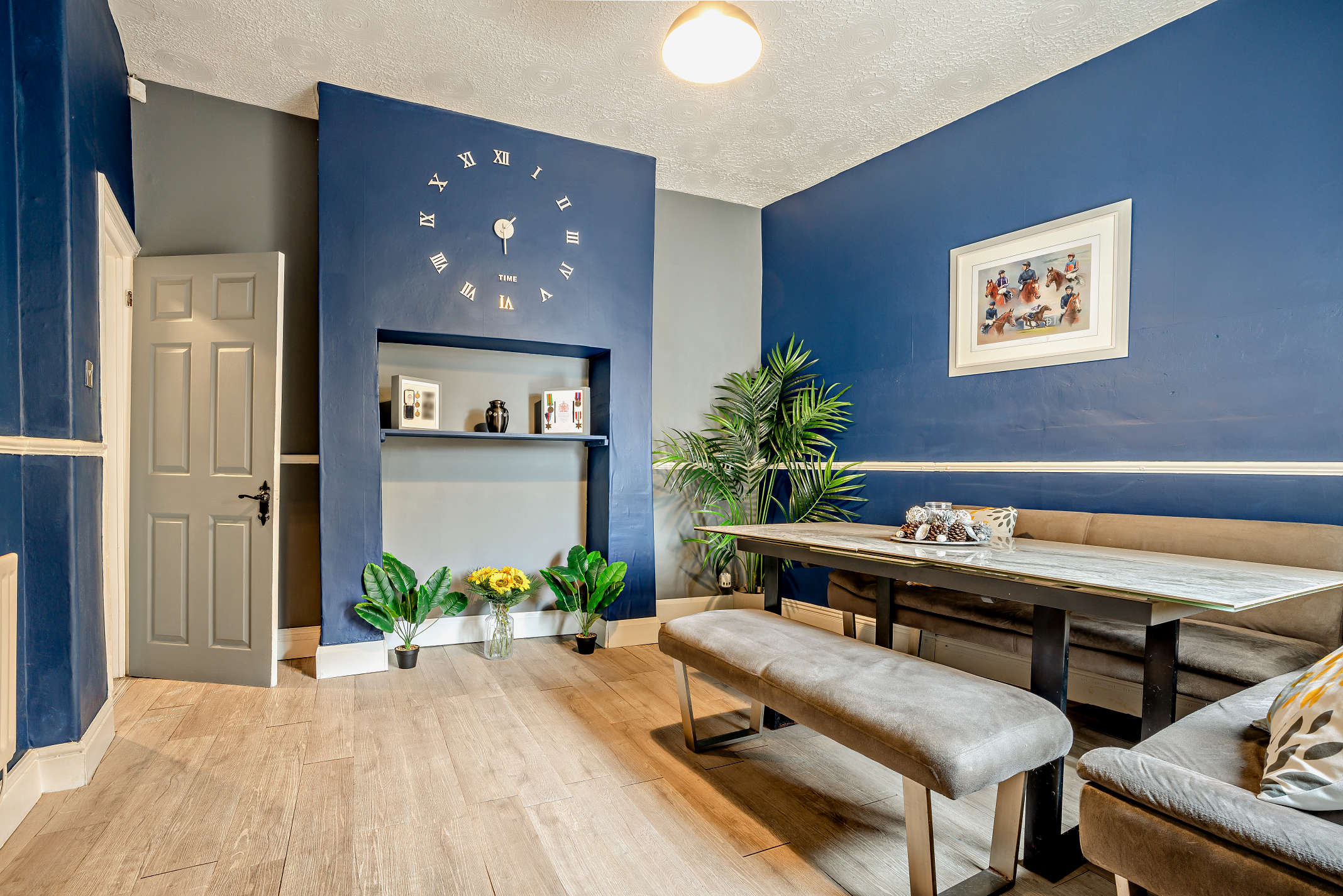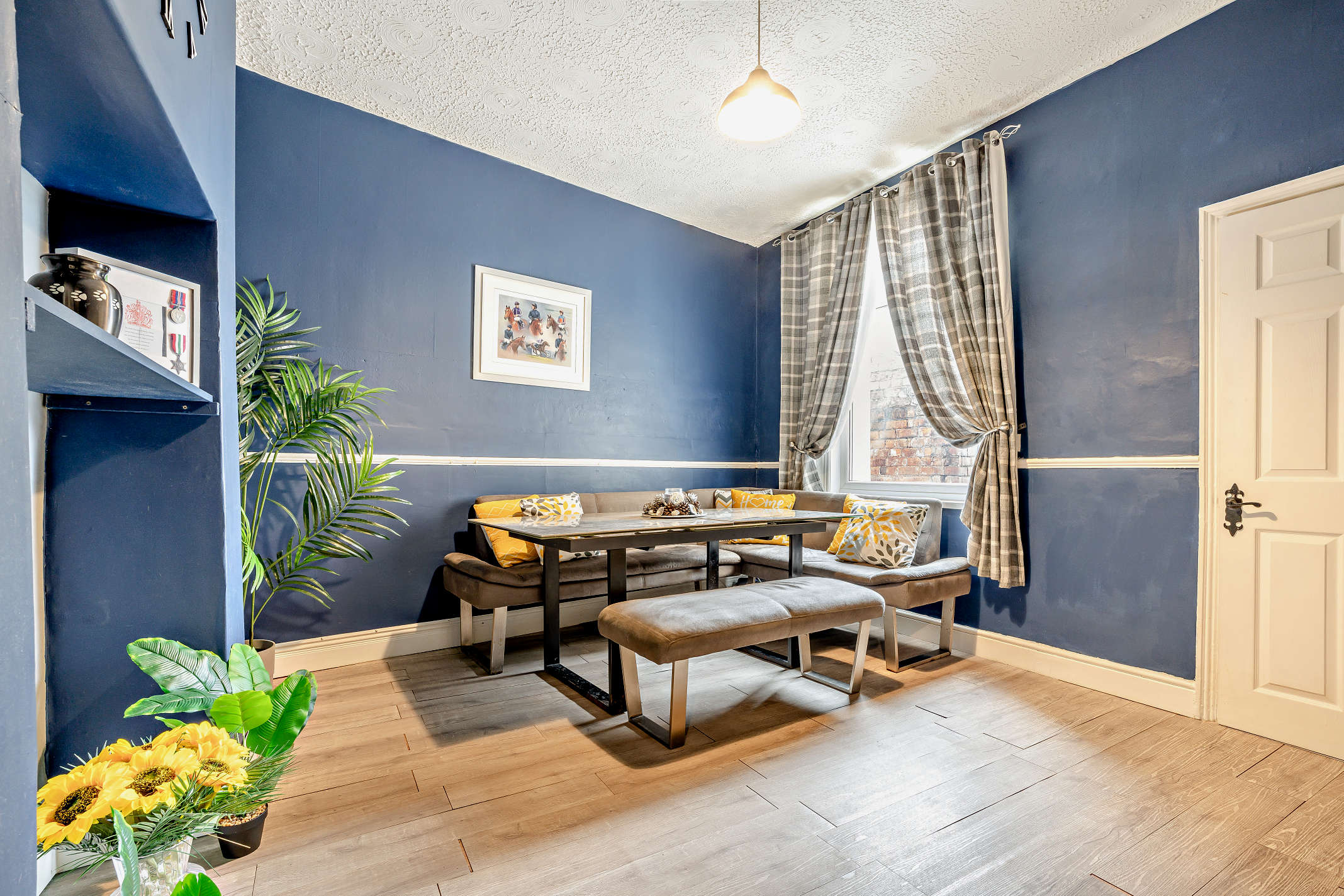 This is a spacious, front aspect reception with a bay window offering plentiful natural light and internal space. The living room also has a feature fireplace and laminate flooring.