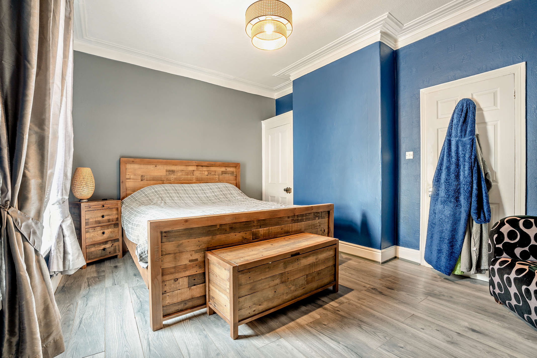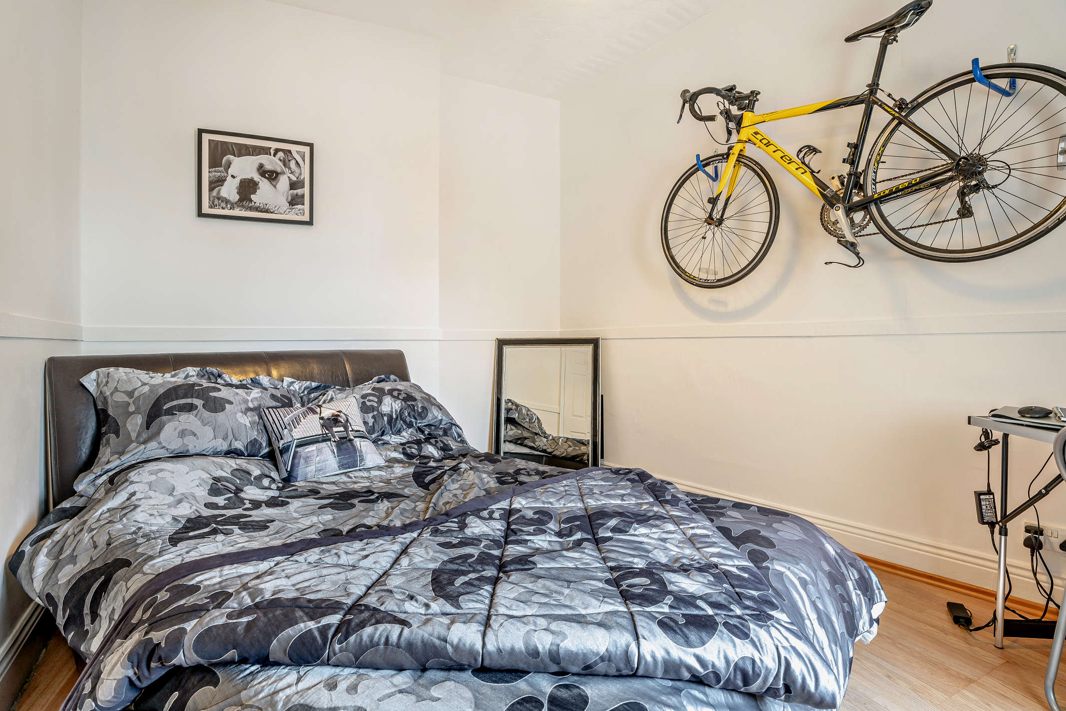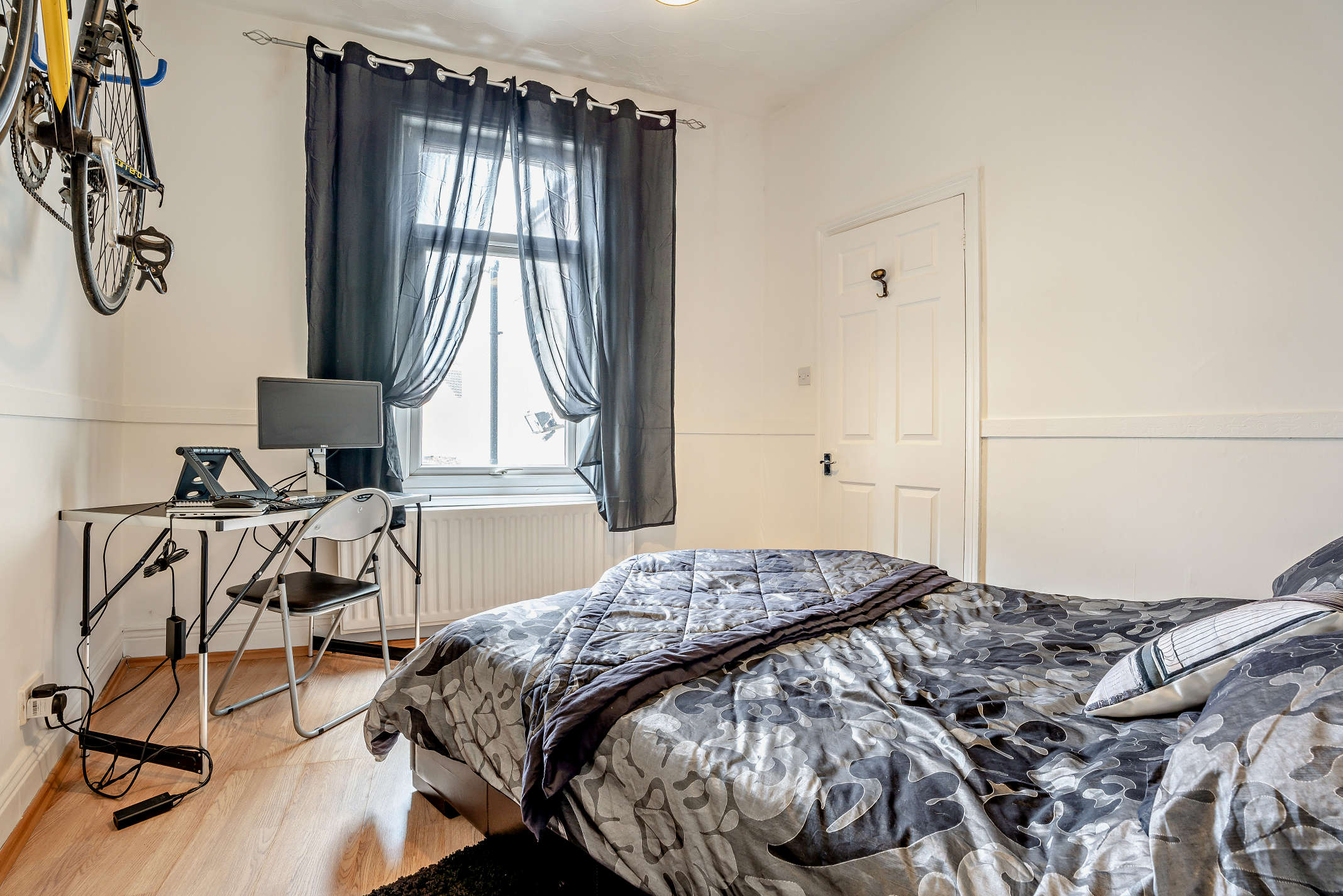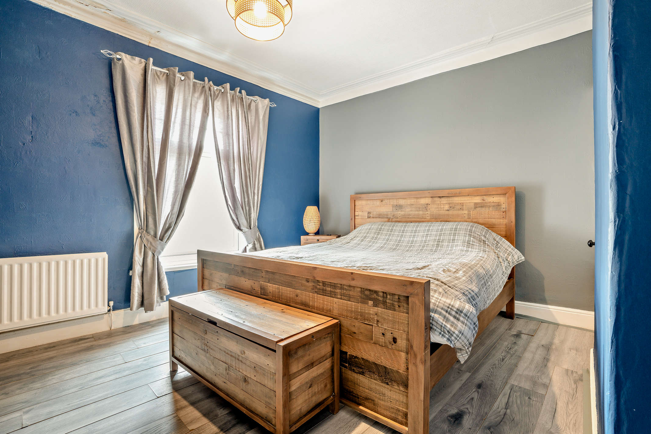 A second well-proportioned bedroom with laminate flooring, and garden views.