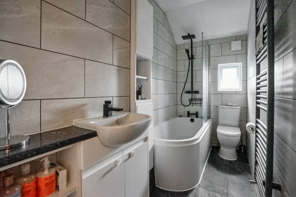 Upstairs, two generously sized double bedrooms provide peaceful retreats, complemented by a newly fitted modern family bathroom showcasing stylish fixtures and a crisp, contemporary design.