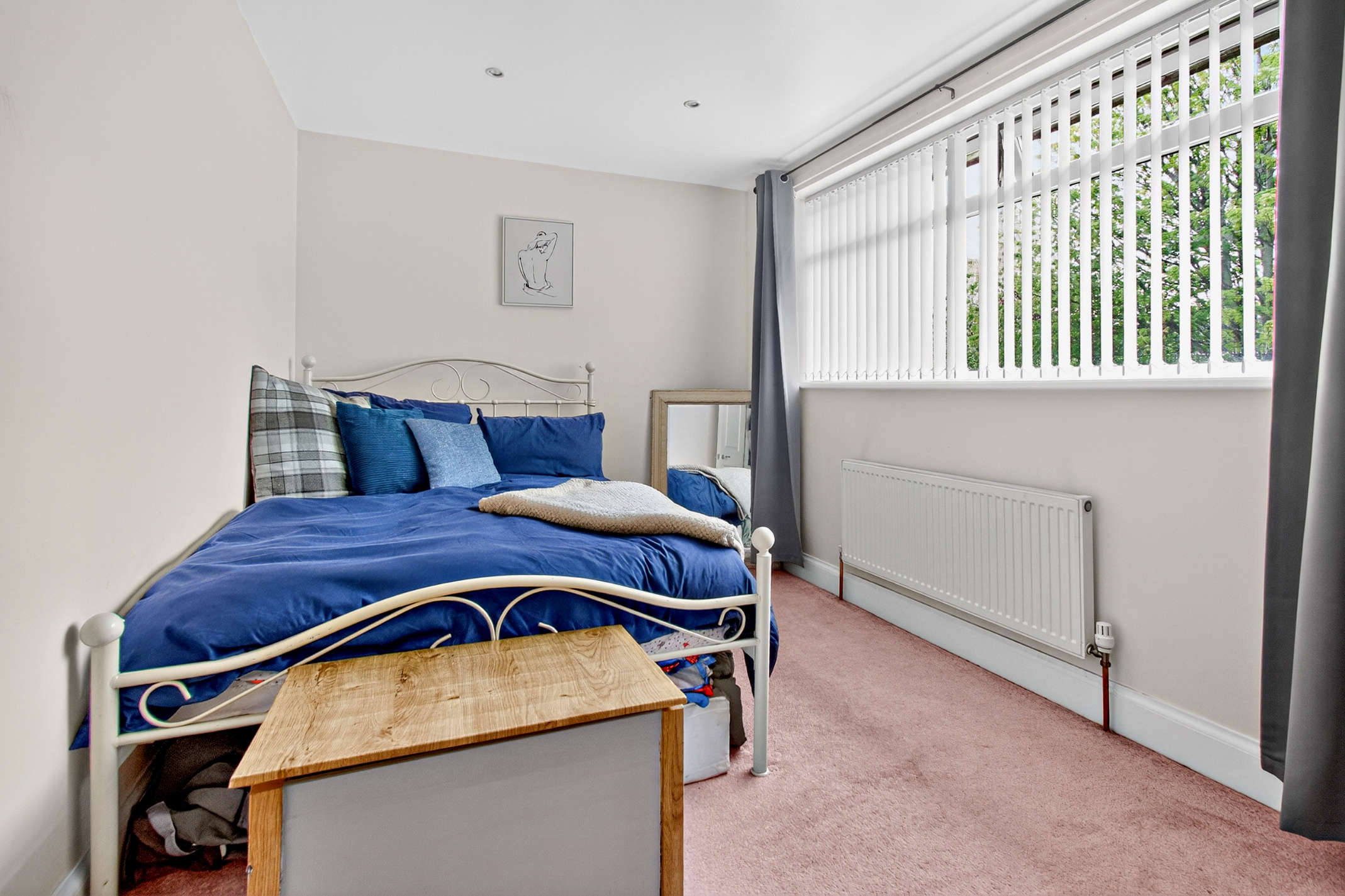 A generous double bedroom situated at the front of the property It offers a large window and carpeted flooring.