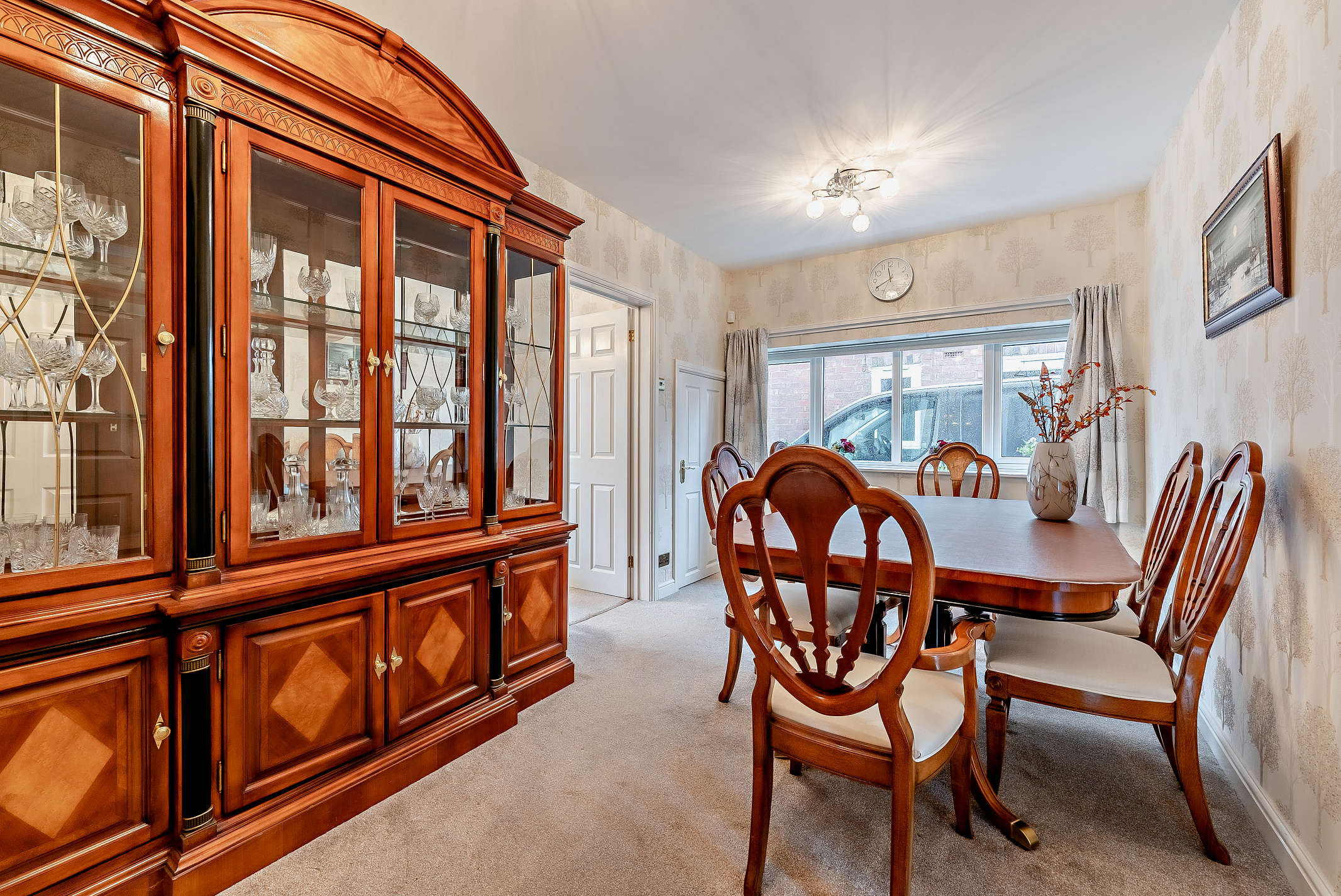 Adjacent to the lounge is a generously sized carpeted dining room, perfect for entertaining and family meals, with easy access to the kitchen.