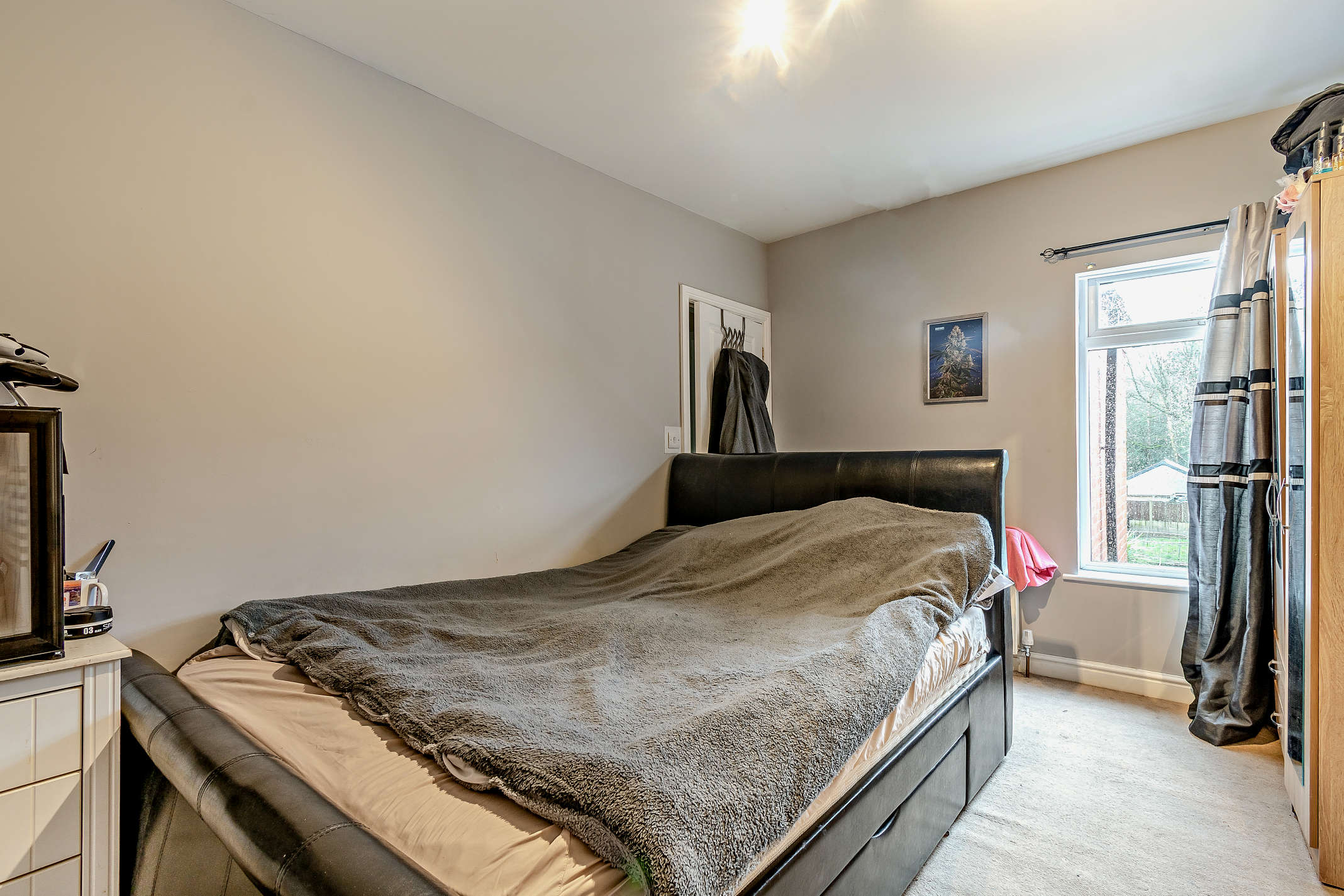 The second double bedroom has carpeted flooring, a rear aspect view, and in-built storage.