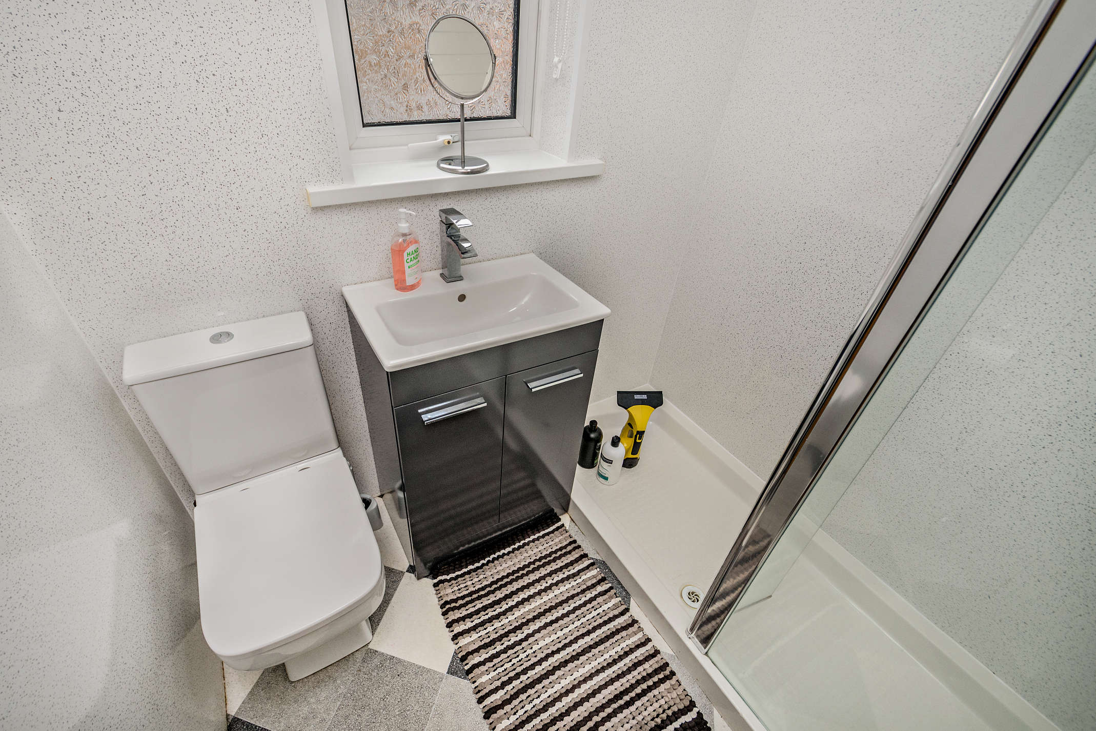 The shower room is fitted with shower, wash hand basin and toilet facilities.