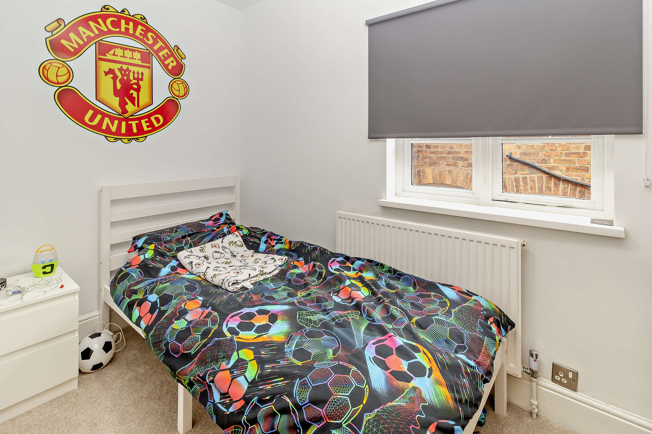 A well-proportioned single bedroom with carpeted flooring and views over the garden.